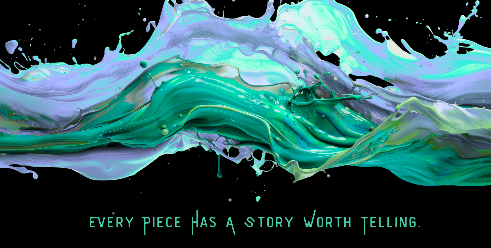 Close-up of a colorful, painted fabric with a UPC code sticker, partially torn, and a black plastic tube extending from the top edge.